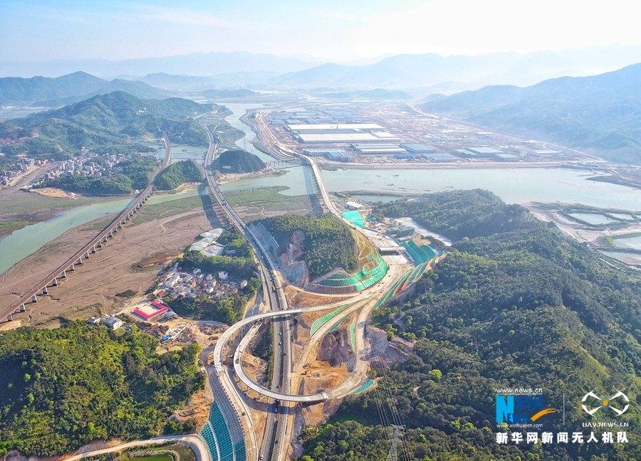 寧德汽車城(三嶼)互通。新華網(wǎng)發(fā)(張文奎攝)從寧德汽車城收費站下高速,不到5分鐘就到了上汽寧德基地。這個高速互通口日均車流量近3000輛次,其中貨車占比近30%...…